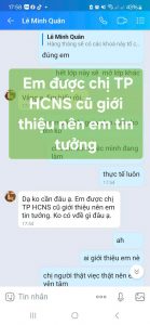 – KÈM ĐI LÀM TẠI CÔNG TY: Khi em phỏng vấn đậu vào công ty em mong muốn rồi suốt quá trình em đi làm tại cty đó mình sẽ kèm em làm trực tiếp , em có thể gọi điện thoại, nhắn tin cho mình, mình chỉ em làm tới giỏi, trong trường hợp mình hướng dẫn rồi em vấn ko làm được mình untra vào máy em làm trực tiếp cho em để em làm được và quen việc. Việc kèm em tại công ty cũng không giới hạn thời gian kèm tới khi em giỏi thì thôi cho nghiệp vụ nhân sự.