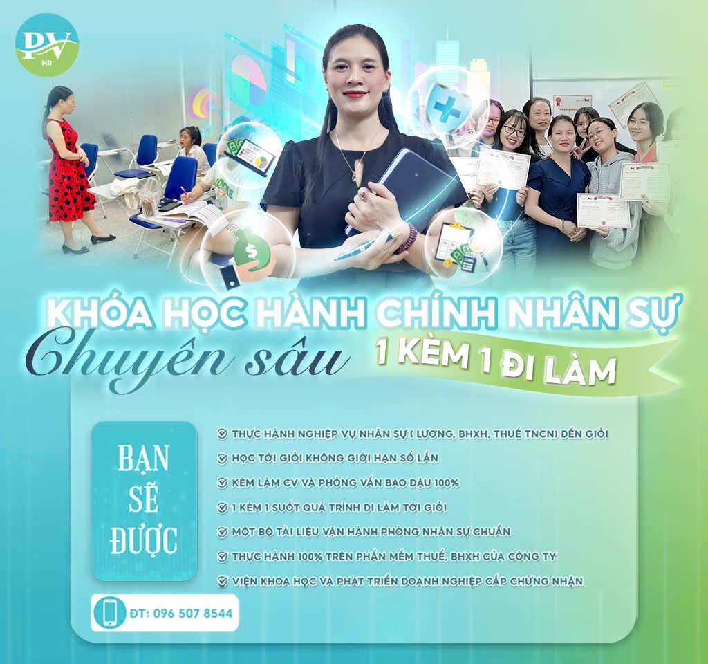 Nội dung học và 1 kèm 1 đi làm như sau: Mình sẽ dạy tất cả nghiệp vụ nhân sự ( Lương, BHXH, Thuế TNCN , HỢP ĐỒNG LAO ĐỘNG, TUYỂN DỤNG, ĐÀO TẠO…) thực tế tại doanh nghiêp đang thực hiện theo đúng quy định của nhà nước bằng chứng từ thực tế của công ty mình đang làm để học viên có thể làm giỏi tại cty của học viên luôn.